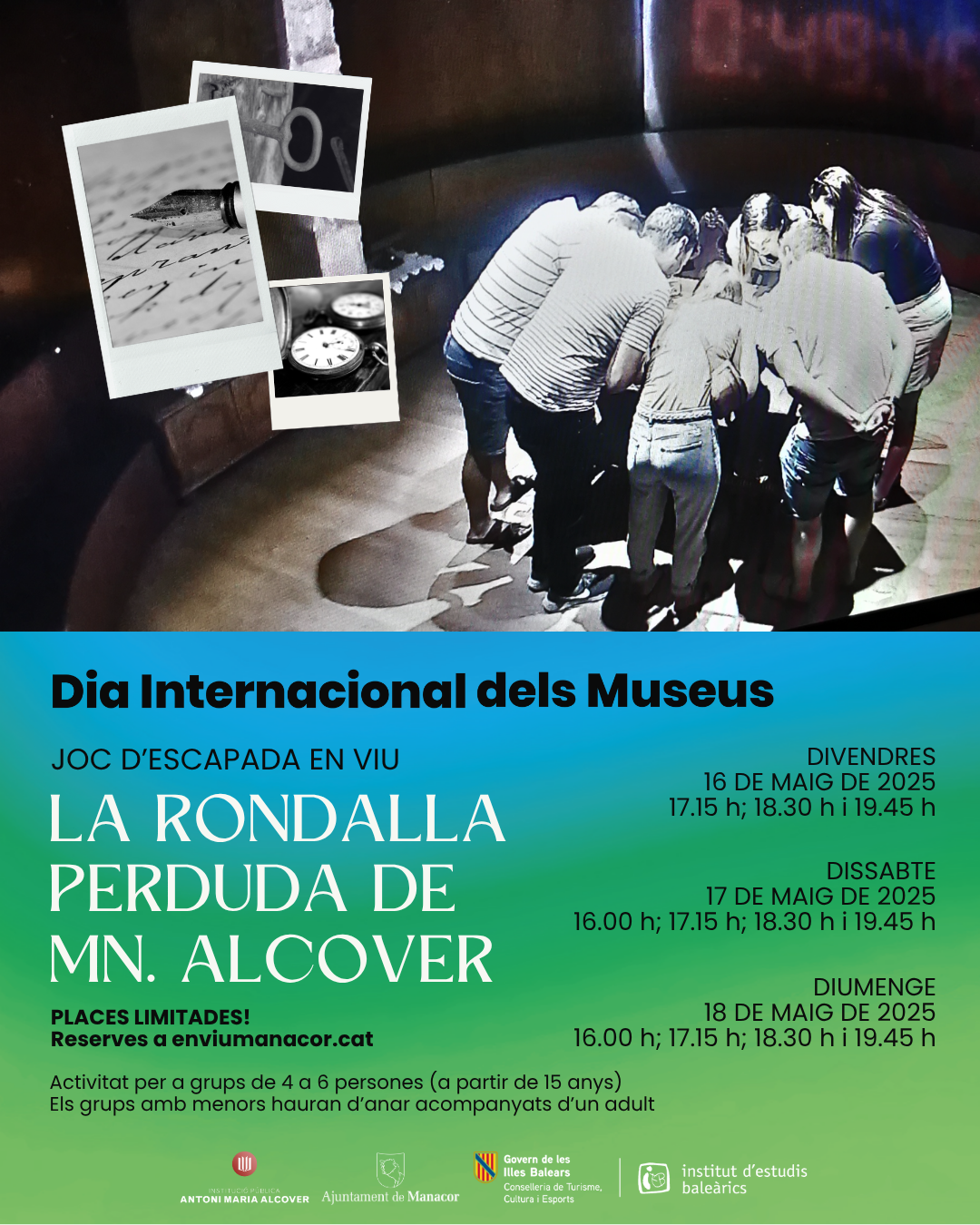 El dia 18 de maig és el Dia Internacional Internacional dels Museus i la Institució Alcover ha preparat diverses activitats per celebrar-ho. Una d’aquestes activitats és un joc d’escapada en viu (scape room) on grups d’entre 4 i 6 persones hauran de cercar el secret més ocult de la Institució Alcover: la darrera rondalla que va escriure Mossèn Alcover abans de morir. El repte és aconseguir-ho en un màxim de 60 minuts.