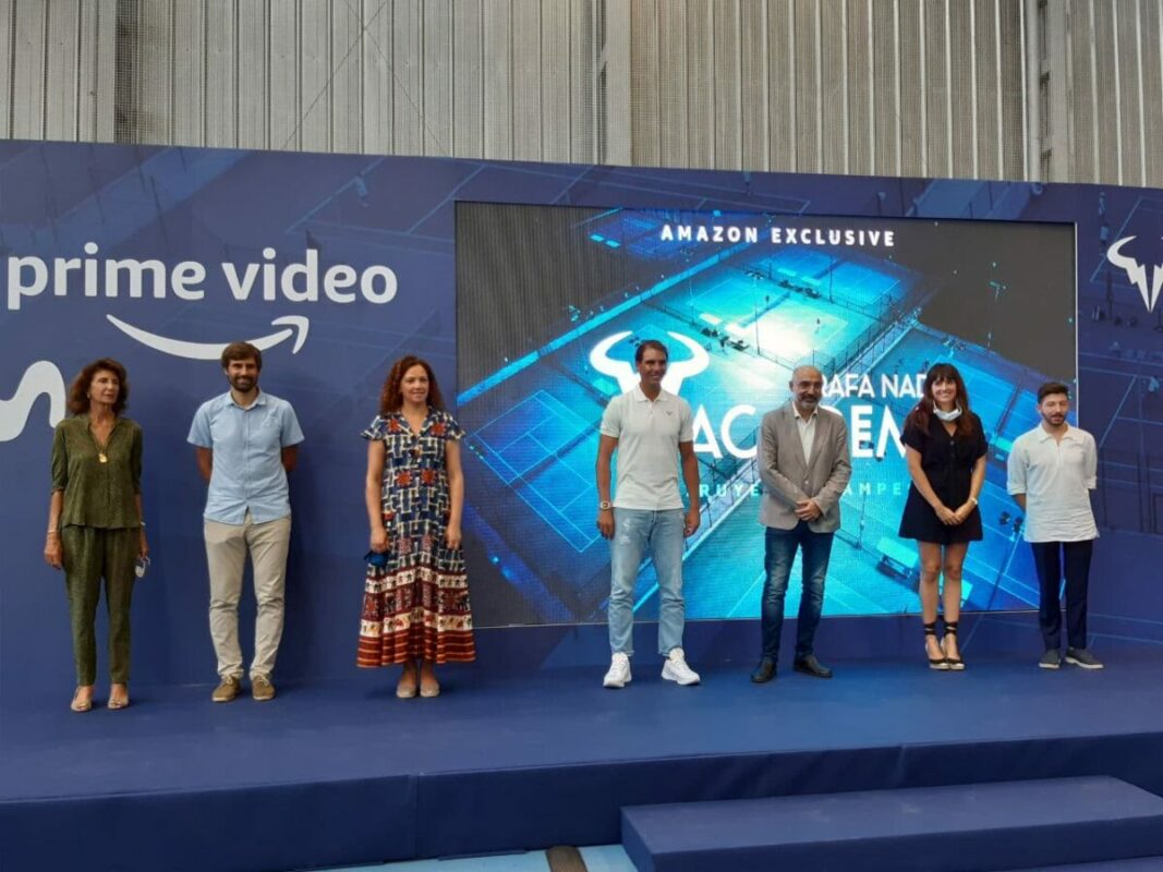 Per cert, a totes les imatges oferides després de la presentació del documental d’Amazon sobre la RN Academy, Nadal hi surt coronat per les banyes publicitàries. Deu ser un requisit corporatiu?