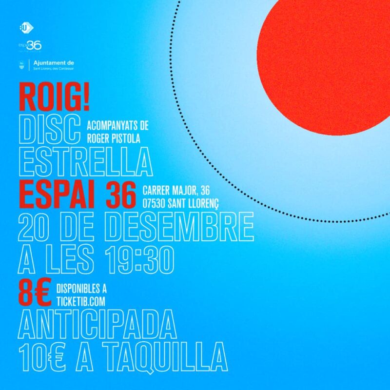 Aquest concert es farà el proper divendres 20 de desembre a partir de les 19.30 h a l’Espai 36 de Sant Llorenç, perquè “és una sala que ens agrada molt i ens sentim molt bé allà”, diu el cantant del grup, Simó Femenies. A més, Roger Pistola acompanyarà Roig! en aquesta presentació, que compta amb el suport de l’associació llorencina Granots&Sopes, que s’encarrega de la barra i de l’Ajuntament del poble.
