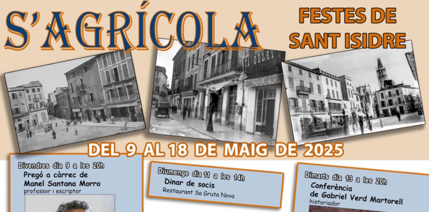 Com cada any l’Associació Cultural S’Agrícola de Manacor, amb motiu del seu patró, Sant Isidre, organitza tot un seguit d’actes per aquestes festes que tendran lloc entre dia 9 i dia 18 de maig.
