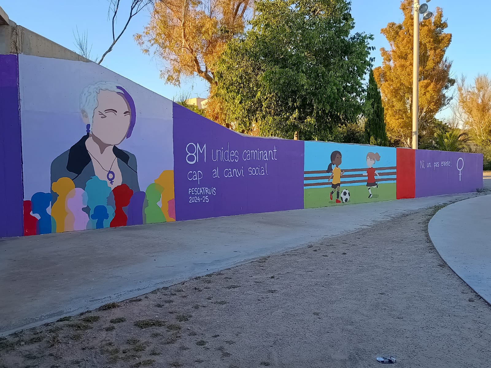 De fet, fins que les artistes de l’entitat Pescatruis no han pogut restaurar-lo, el mural ha estat tapat amb una tela. Les despeses de pintura i tota la resta de material necessari han corregut a càrrec de l’Ajuntament. “Si el tornen a vandalitzar, el tornarem a pintar” afirma la delegada d’Igualtat, Carme Gomila.
