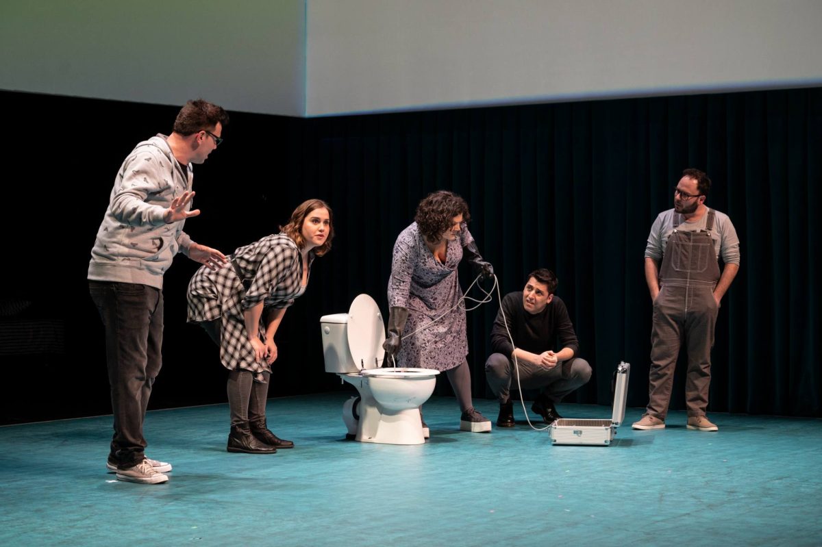 Sí, aquesta és la història en què apareixen els petits negacionistes que tots duim a dins. Som els actors i les actrius de la companyia La Calòrica explicant uns fets que ens varen passar a nosaltres. Vàrem descobrir que les canonades de l’edifici on assajàvem no estaven connectades al clavegueram i que, per tant, les aigües brutes quedaven acumulades als baixos i als fonaments de l’edifici. I això afectava tota l’estructura. Com pots convèncer tota una comunitat de veïns que hi ha un problema urgent i que ens pot deixar sense casa? És aquí on trobam la metàfora que ens serveix per parlar del canvi climàtic.
