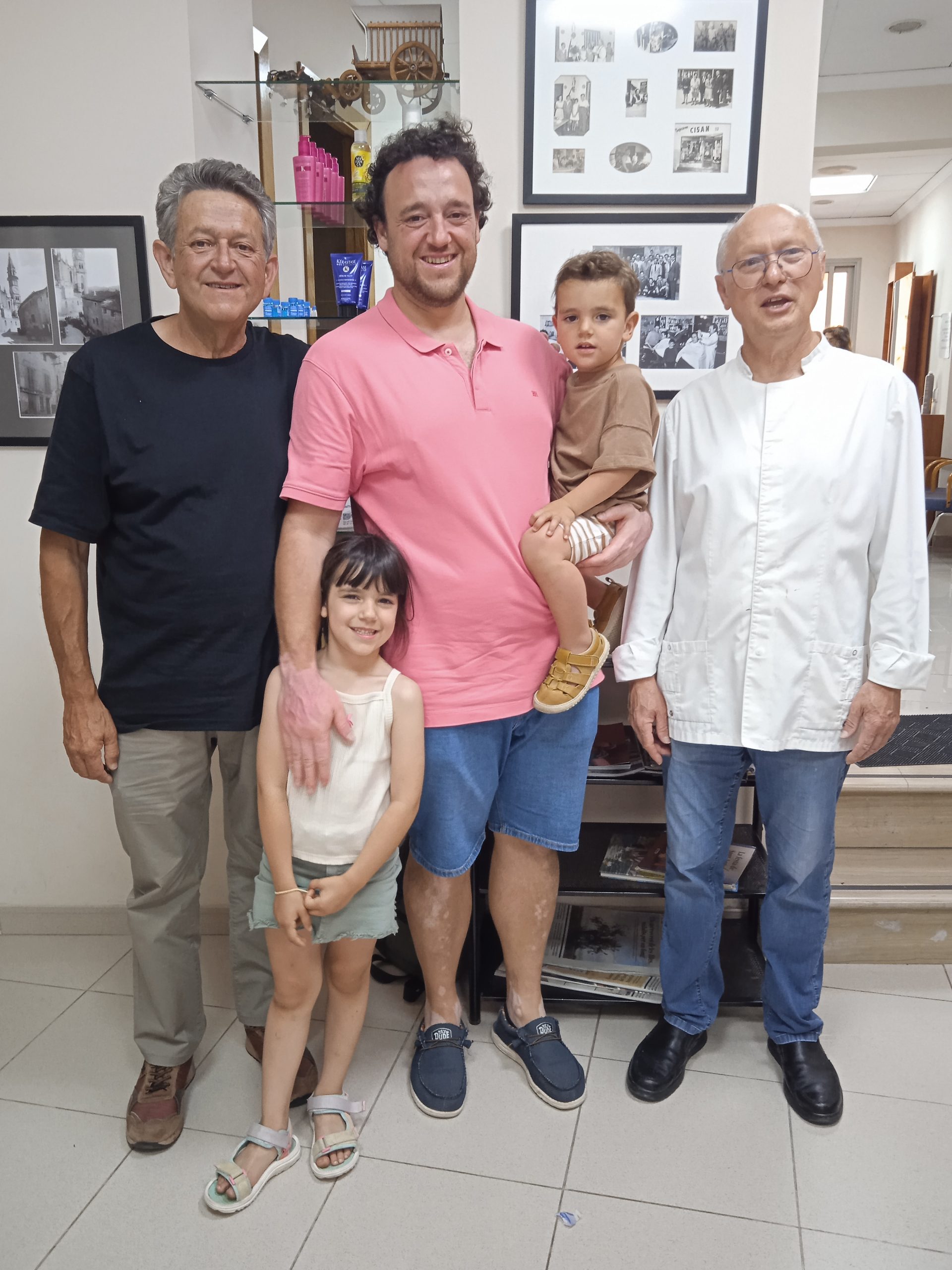 A les 13:03 n’Andreu feu seure a la cadira en Joan Gomila, pare i padrí dels dos anteriors. És macianer, casat a Manacor amb na Maria Sansó i fuster de professió. Fa cinquanta anys li tallava els cabells el pare de n’Andreu, quan la barberia estava a l’entresol de la plaça Weyler. L’expectació era màxima. Què deu passar pel cap de n’Andreu?, em vaig demanar, mentre tractava de retenir amb la mirada el moment. Ell, el bon barber i bon perruquer ens explicava coses. Com quan tenia deu anys i feu les primeres passes en la professió. Era al local del carreró de Las Vegas. Aleshores, ens diu, tenien unes peces metàl·liques rectangulars i triangulars que tenien un número. Estaven penjades a la paret i quan entrava el client n’agafava una i això determinava el torn. En aquells temps, en diu, als papers oficials el tall amb navalla es deia “corte de pelo a navaja o parisien”.