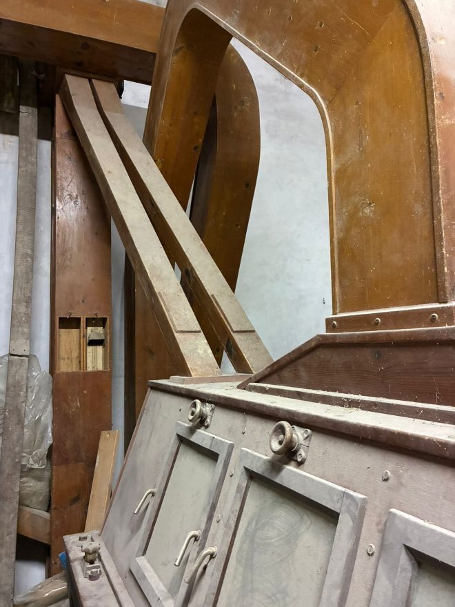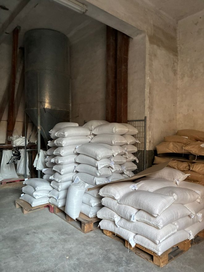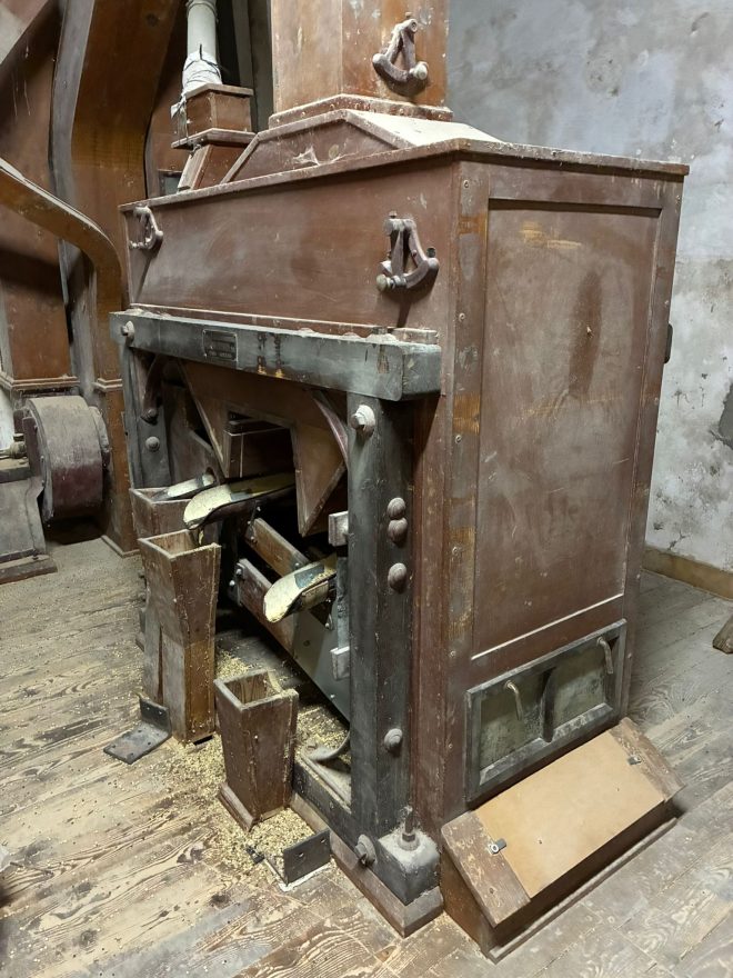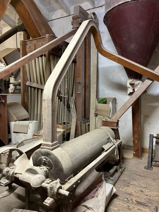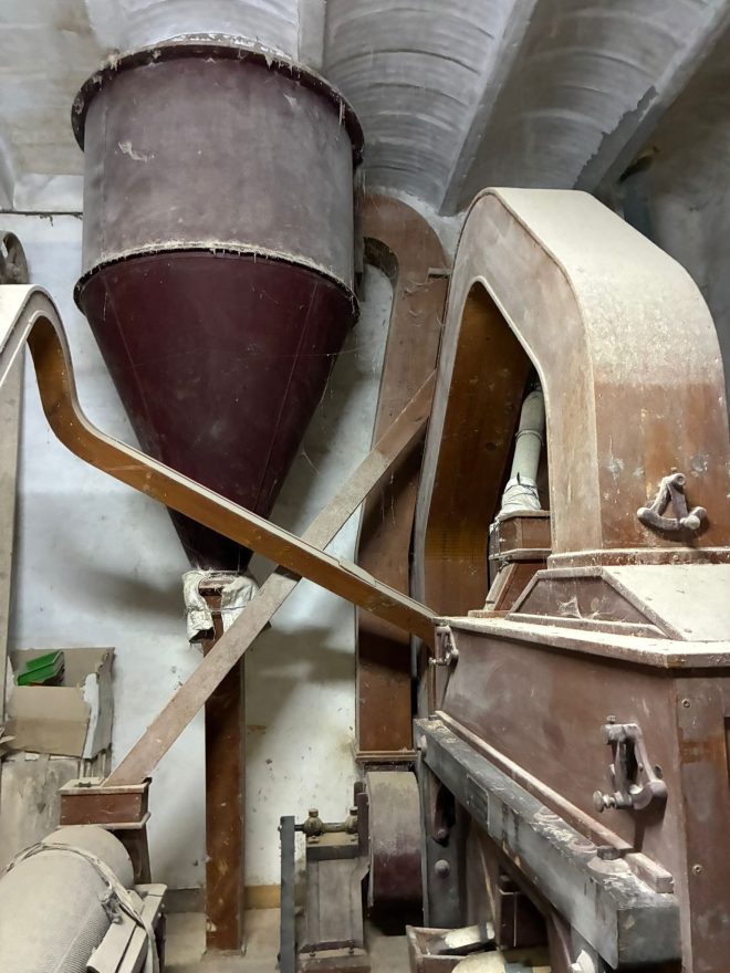 La fàbrica de farina va deixar de funcionar aproximadament l’any 1980. A Can Granot, que també eren família de Can Batliu, feren totes les conduccions per on transitava el gra i la farina. “Per dedins estan folrades de zinc, perquè el gra es menja la fusta i així estan protegides”, diu Soler davant les majestuoses construccions de fusta, reguinyols d’una indústria esvaïda dins la immensitat d’unes naus que avui fan de magatzem de l’establiment que ara està a punt de tancar. Són més de vint màquines pensades i organitzades per fer la farina més blanca possible, “que era com la volia la gent un temps. Avui, com més morena és, millor”.