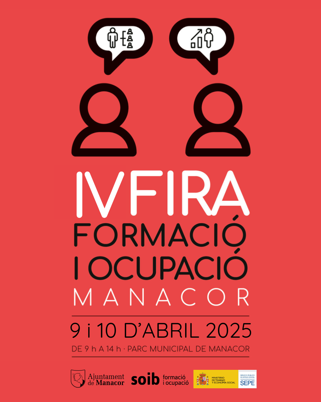 La IV Fira de Formació i Ocupació de Manacor es presenta com una oportunitat única per a persones que cerquen feina, estudiants i professionals que vulguin conèixer les darreres tendències del mercat laboral i les opcions formatives disponibles. L’entrada és lliure i l’horari serà de 9 h a 14 h. L’acte inaugural de la Fira serà dia 9 a les 9.30 h i comptarà amb la presència del batle de Manacor, Miquel Oliver; i el delegat de Desenvolupament Local, entre d’altres representants del Govern i dels centres formatius i empreses que hi participen.