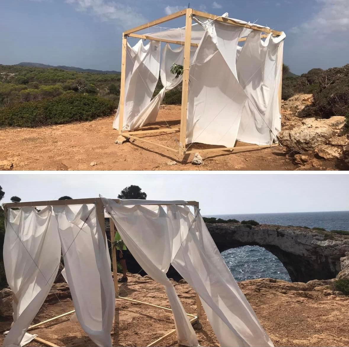 No sols deixen trastos al costat dels contenidors, els incívics. També s’entretenen a fer-ho en plena natura, en aquest cas ben arran del pont que hi ha entre cala Varques i cala Falcó. Es veu que dos noviis s’hi feren fotos i ni ells ni el retratista tengueren esma de dur-se’n l’embalum. Ja ho diuen, que la realitat supera qualsevol ficció imaginada…
