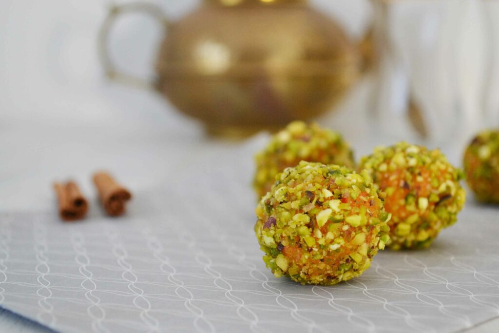 4. Formam les bolletes d’una mida que estigui bé per menjar-se-les d’una bocinada i les arrebossam amb els pistatxos trossejats.