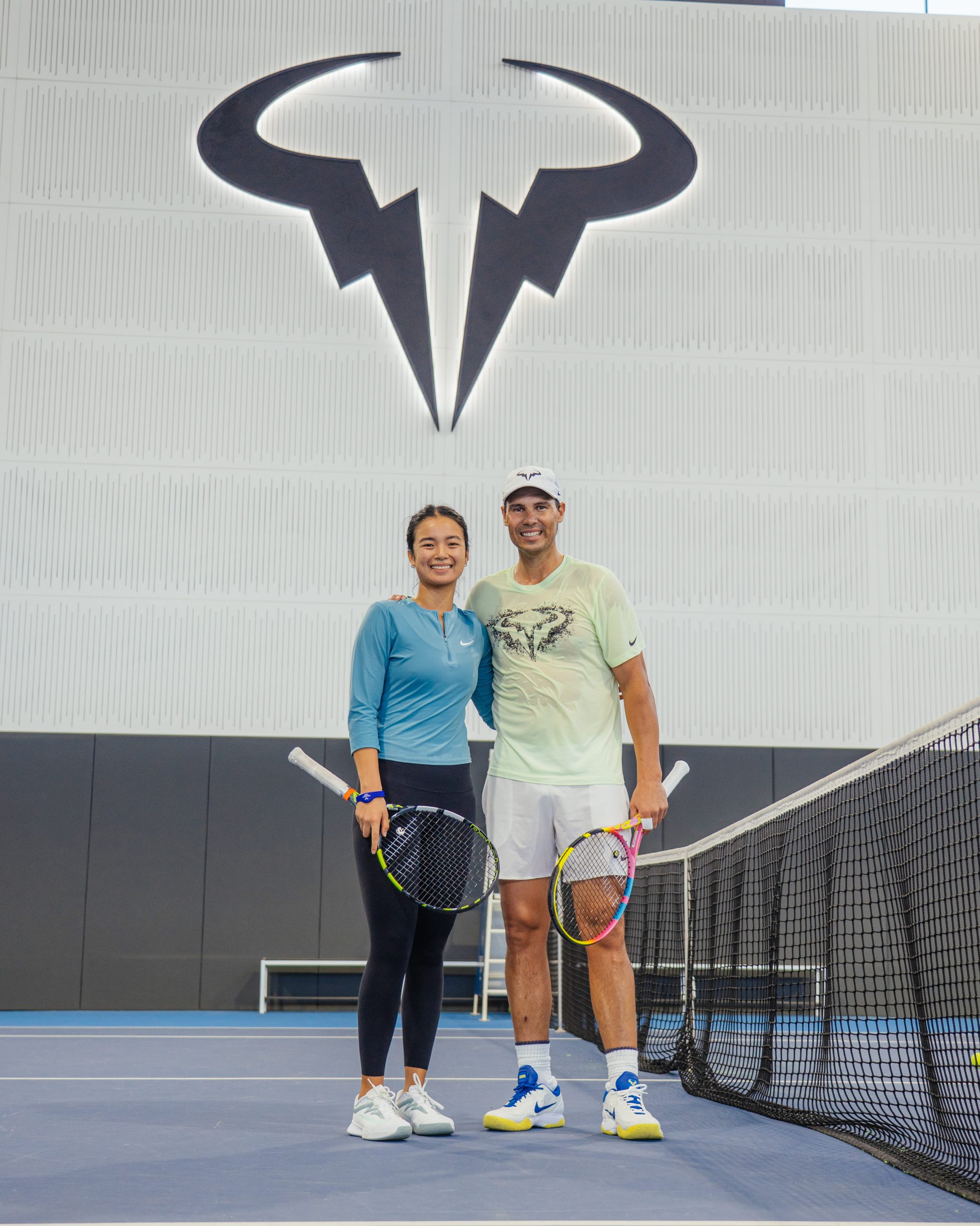 Per increïble que sembli, després de la seva retirada l’any passat, Rafel Nadal no havia tornat a trepitjar una pista de tennis. La criança dels dos fills de ben segur que l’ha mantengut ben ocupat. Ha hagut de ser aquesta setmana, a la seva acadèmia i davant la jove promesa filipina Alex Eala, que es forma com a tennista a la Rafa Nadal Academy, que el tennista manacorí ha tornat a agafar la raquesta i s’ha posat els calçons curts. Per a Nadal “ha estat una gran sensació tornar a una pista de tennis, després d’un any. Ha estat genial entrenar amb Alex Eala,. La pròxima vegada estaré més fort”, ha dit l’extennista.