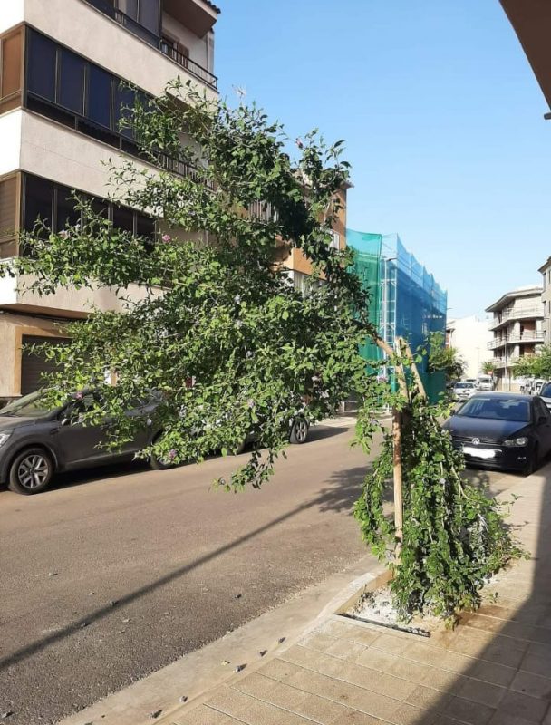 Així va començar el dia aquest arbre del carrer de l’Historiador Truyols. No han estat dies de gaire vent… Deu haver estat qualque desaprensiu que s’hi ha enfilat com una moneia? O tal vegada és un esqueix fruit de manca de manteniment?