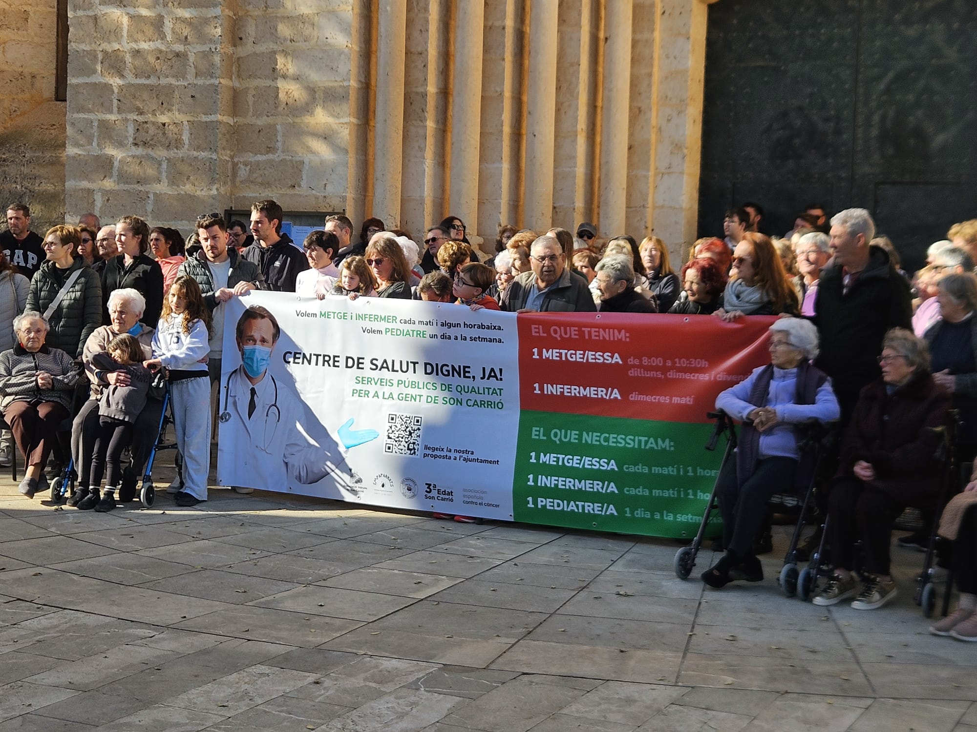 Un centenar llarg de persones es concentraren dissabte passat davant l’església de Son Carrió per reclamar uns millors serveis sanitaris en aquest poble del municipi de Sant Llorenç.