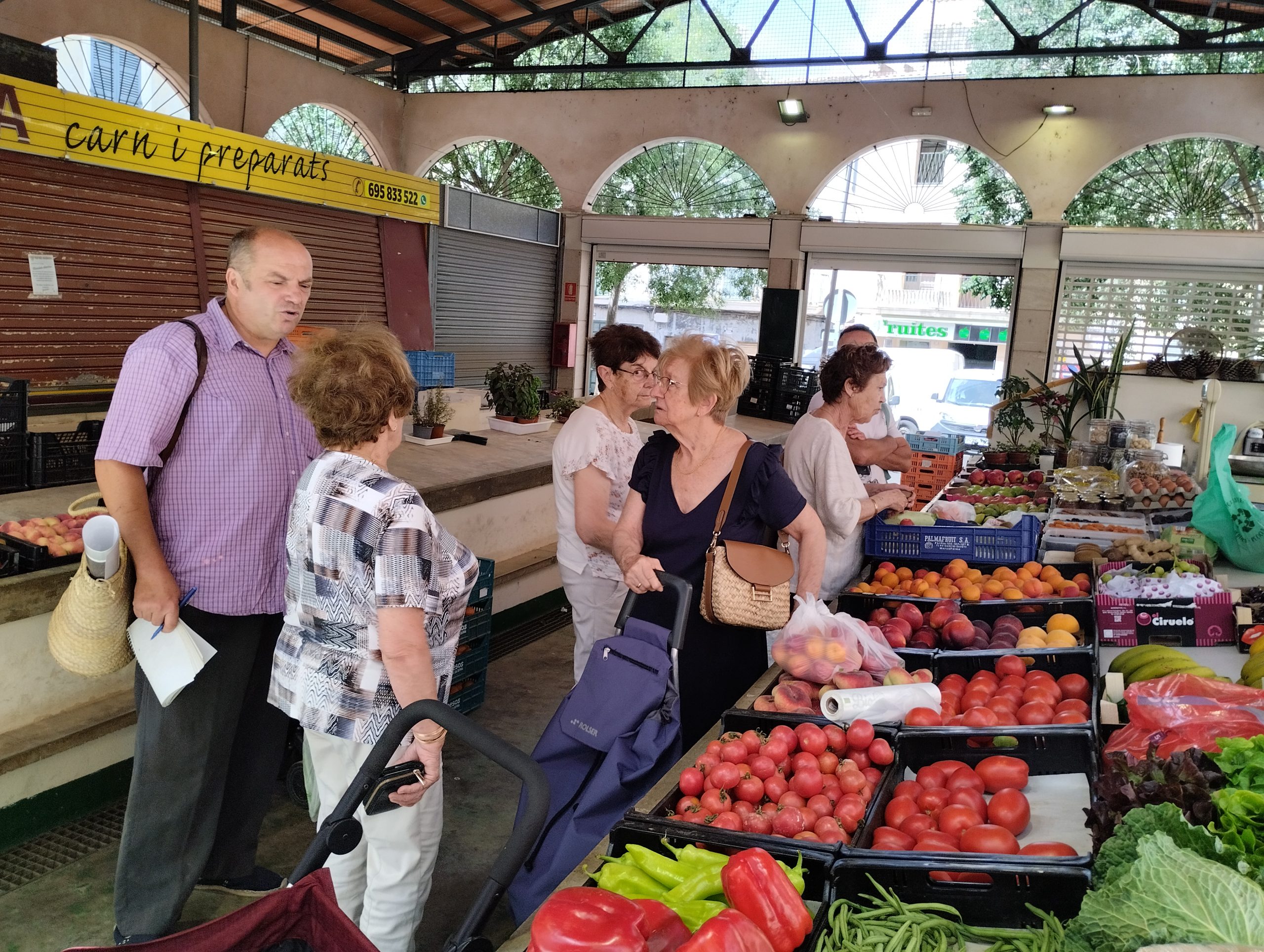 Marta Sanxo és una professora jubilada que fa 50 anys que és clienta fidel a aquest mercat perquè per ella comprar aquí és un compromís amb la pagesia. Està convençuda que els joves estan anul·lats per les xarxes socials i que els professors estan desistint de fer pensar els seus alumnes. “Qüestionar és incòmode” sentencia Marta. Estam d’acord en el fet que hem de posar damunt la taula del menjar bons productes… i damunt els pupitres també!