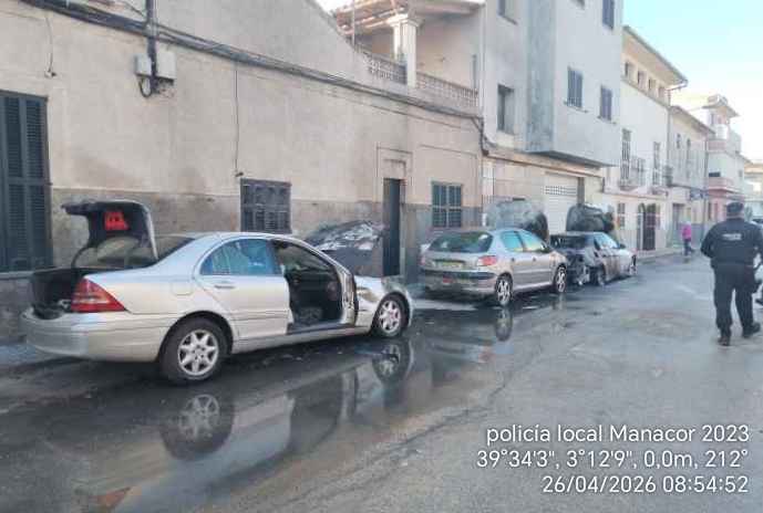 Un incendi en cadena a tres cotxes diferents ha sorprès a primera hora del matí els veïnats del carrer Simó Tort de Manacor, on se situa el centre de salut del municipi. Sortosament, una patrulla de la Policia Local estava a la zona gestionant un altre avís i s’han desplaçat cap al carrer tot d’una, duent a terme una primera actuació amb extintors. Pocs minuts després un camió de bombers ha arrribat al carrer Simó Tort per acabar d’extingir els diferents focus. Tot i que les primeres hipòtesis apunten que hauria estat un acte intencionat, ara la policia espanyola s’encarrega d’investigar els fets.