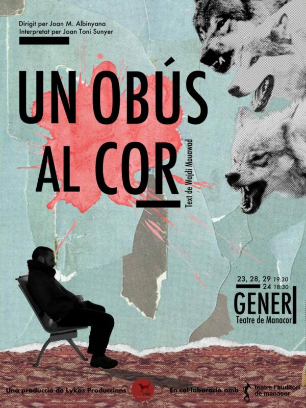 El monòleg, Un obús al cor és un text de l’escriptor libanès Wadji Mouawad fruit de l’adaptació de la part final de la primera novel·la de l’autor, Fisonomia Retrobada. Mouawad és un dels autors de referència d’expressió francesa, amb una literatura marcada per l’imaginari de la identitat i la recerca dels orígens, la memòria, la guerra i l’exili, amb un alt component autobiogràfic. És també l’autor de la trilogia La Sang de les Promeses, composta per Litoral, Incendis, Boscos i Cels, que s’ha representat diverses vegades per companyies tan reputades com LaPerla29. Des de Lykos Produccions es mantendran fidels al text original, que simplement han adaptat a les formes balears.