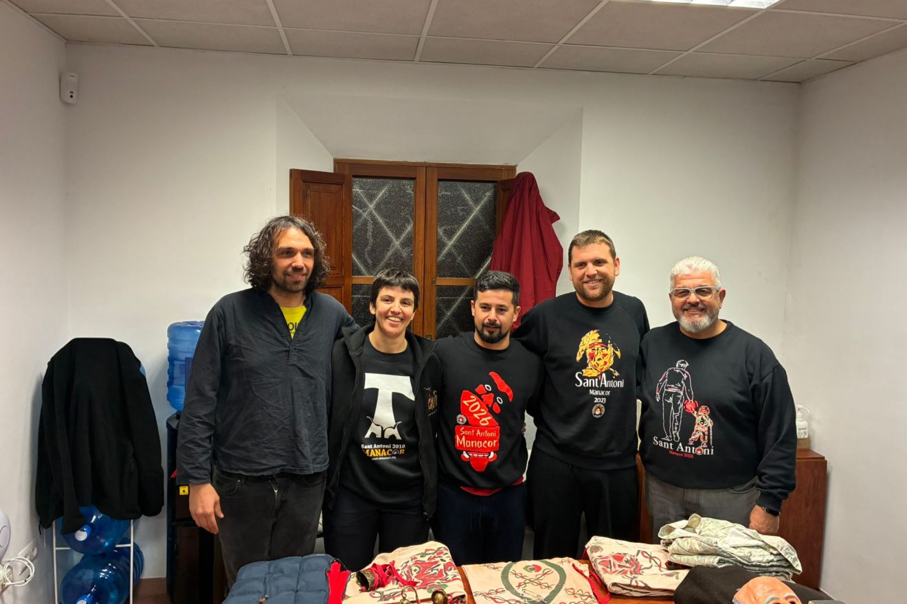La separació de poders dins la cosa santantoniera. El president Laporta-Gomila minuts abans no sap encara quina serà l’alineació titular per al primer ball. Dins l’Escola, mentrestant, els dimonis es comencen a vestir. Falta mitja hora escassa. Primer el revestiment que es posen al pitram. Després els vestits. I les bagues fetes amb les vetes vermelles. Els dimonis petits i Sant Antoni fan més via. El dimoni gros ha de menester més temps, per la faixa, que li col·loca el baciner Mateu Juan, i, sobretot, per la carota. L’alineació ja està clara. Mateu Aleix Flick ja ha anunciat el quatre titular d’avui: a la porteria de Sant Antoni, parant els cops dels dimonis, Llorenç Prohens; repartint joc amb contundència i sobrietat, com a dimoni gros, Toni Lluís Reyes; i als laterals, amb atacs incisius i rapidíssims, Magdalena Pérez i Toni Juan, Aleix. A la banqueta, al costat del míster Aleix, Antoni Bassa, Joan Toni Sunyer i Bernat Aguiló.