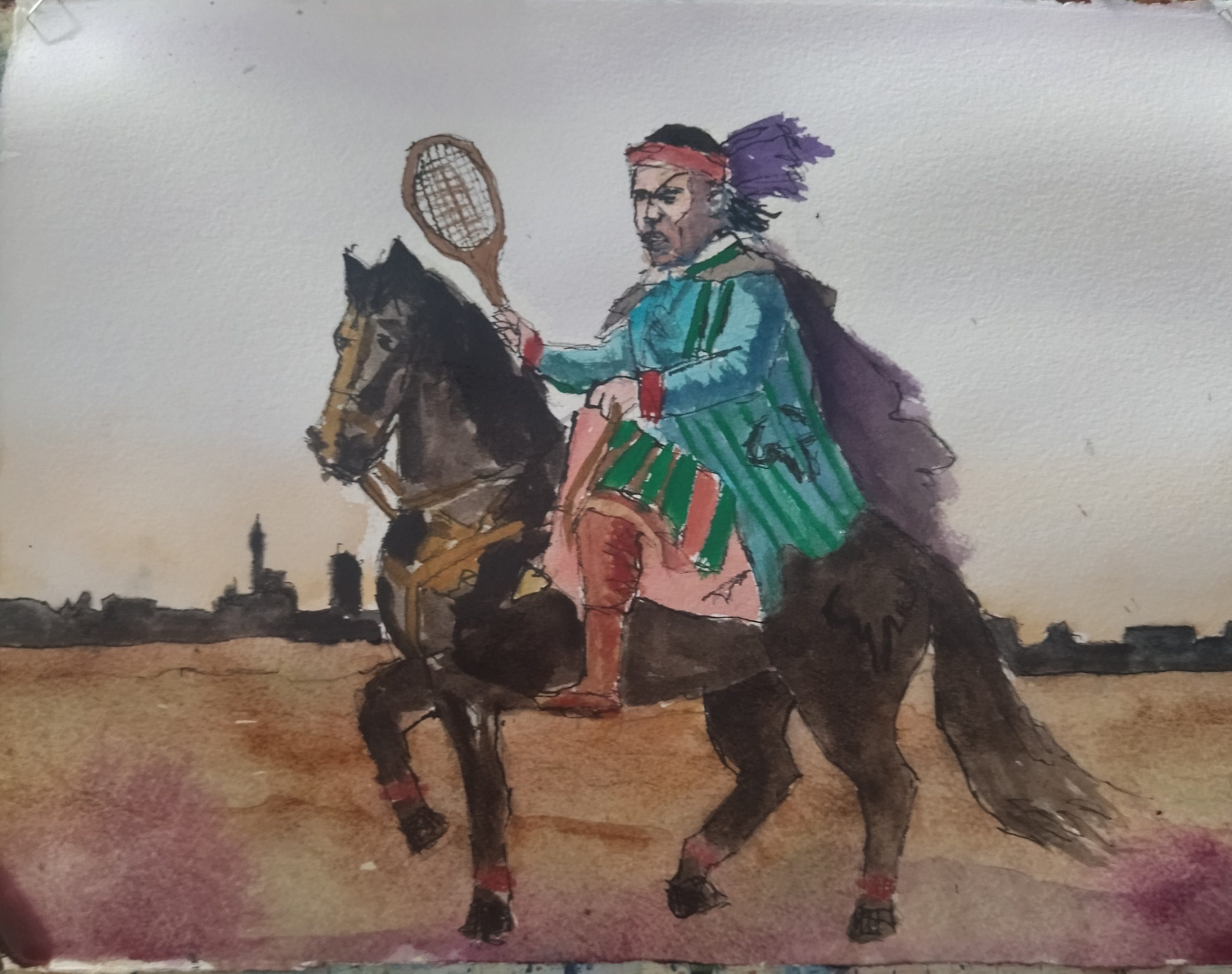 La pintura amb la idea del marquès de les raquetes a cavall és de Salvador Vadell.