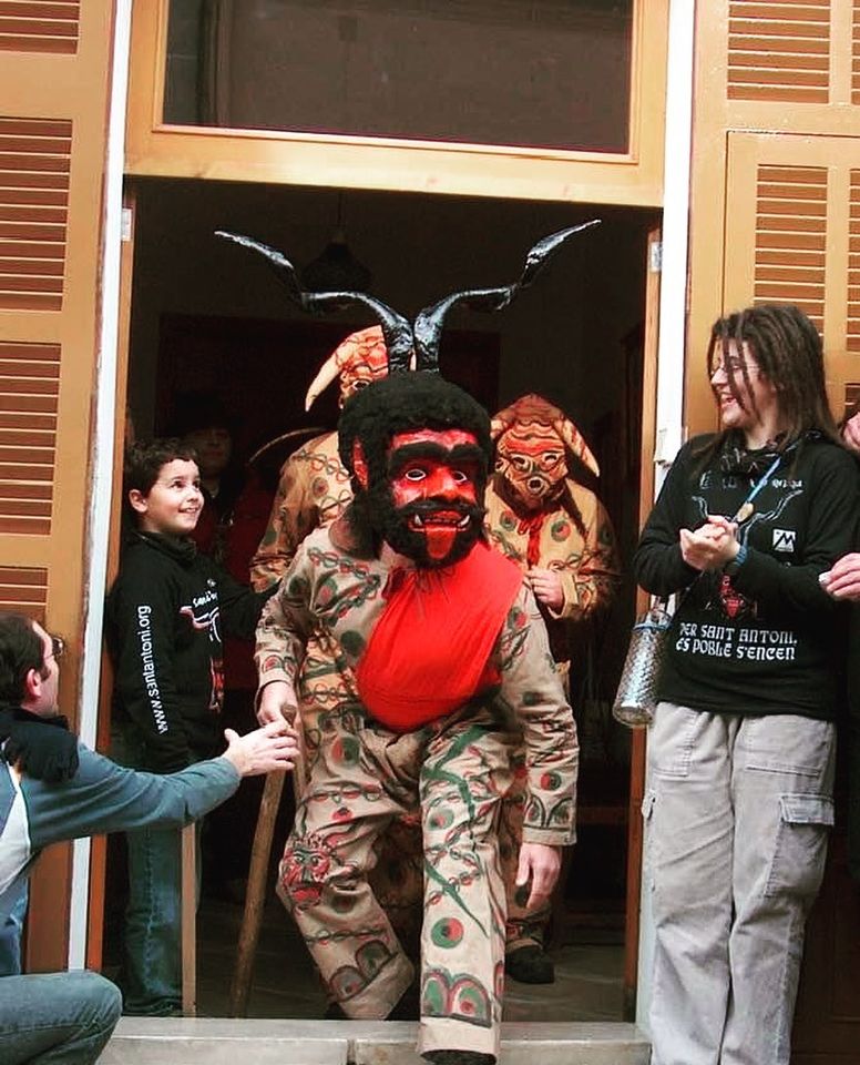 Qui sap de quin any és aquesta foto. El cas és que a la dreta, encara infant, hi podem veure Antoni Juan Ruiz, fill i net i renet de dimoni petit, que acabaria sent un dels dos actuals dimonis petits. A l’altra costat, ja adolescent, i amb rastes, Magdalena Pérez, que s’ha estrenat com a dimoni petit tot just aquesta setmana. Un ho tenia tot de cara per saber aleshores que tendria aquest paper dins la festa. L’altra, en aquell moment, no s’ho podia imaginar de cap de les maneres.