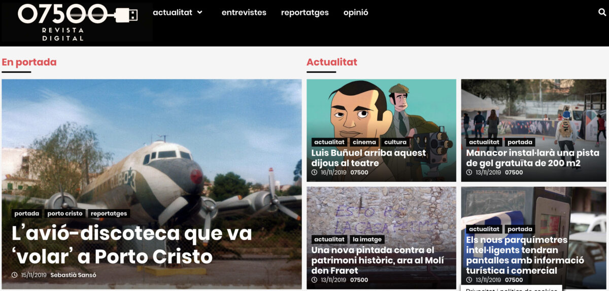 Des de fa unes setmanes ha començat a funcionar una nova publicació digital a Manacor. Es tracta de 07500, un portal web que informa de manera generalista de tot allò relacionat amb el municipi, i inclou també reportatges i entrevistes propis. A la llegenda de qui són, hi diu, escuetament: “La revista digital 07500 neix amb la voluntat d’informar i la intenció de posar en valor articles, reportatges, entrevistes i opinions del nostre municipi”. Tot i que moltes de les notícies que publica el nou portal no estan signades, sí que hi hem pogut veure un col·laborador de luxe, el company en tasques informatives Sebastià Sansó, amb una entrevista extensa a Pep Boix, el popular venedor de còmics manacorí, i una ànima creativa, inquieta i indomable.