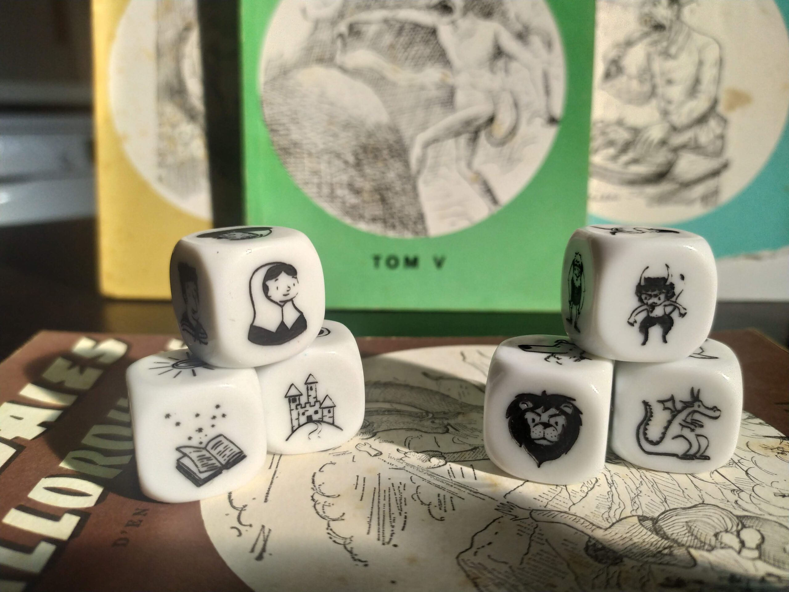 És un joc en forma d’story cube que mescla la cultura popular, a través de l’univers de les rondalles, amb el joc de daus. Els seus creadors començaren a gestar el projecte fa ja uns anys, i ara l’Editorial Moll ha engegat una campanya de micromecenatge a verkami per poder produir-lo.