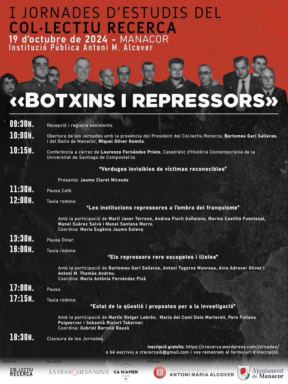 Sí, perquè es tracta d’ajudar la gent a trobar aquestes informacions, hi ha uns elements comuns que tenim a tots els pobles. Hi ha unes pautes repressores, uns criteris que es repeteixen. Tots ho acabaven fent igual. Mira, a la primera de les conferències, la que fa Lourenzo Fernández, parla de Galícia i la repressió allà. Les maneres d’allà i d’aquí són molt semblants.