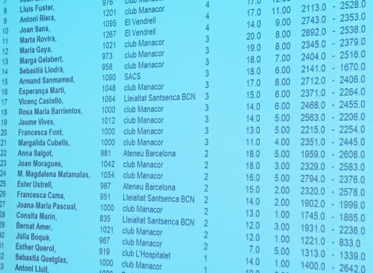 La jugadora que va aconseguir més punts de partida durant la jornada va ser Maria Gayà, amb un total de 2.892, que suposen una mitjana de 482 punts per partida.
